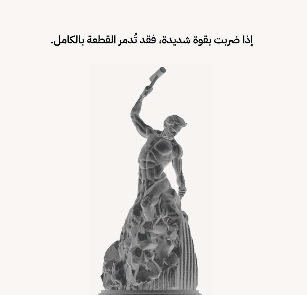تبدأ بإخراج ذراعك من قطع الرخام تلك حتى تتمكن من إكمال النحت. واثناء ذلك عليك ان تتوخى الحذر..
