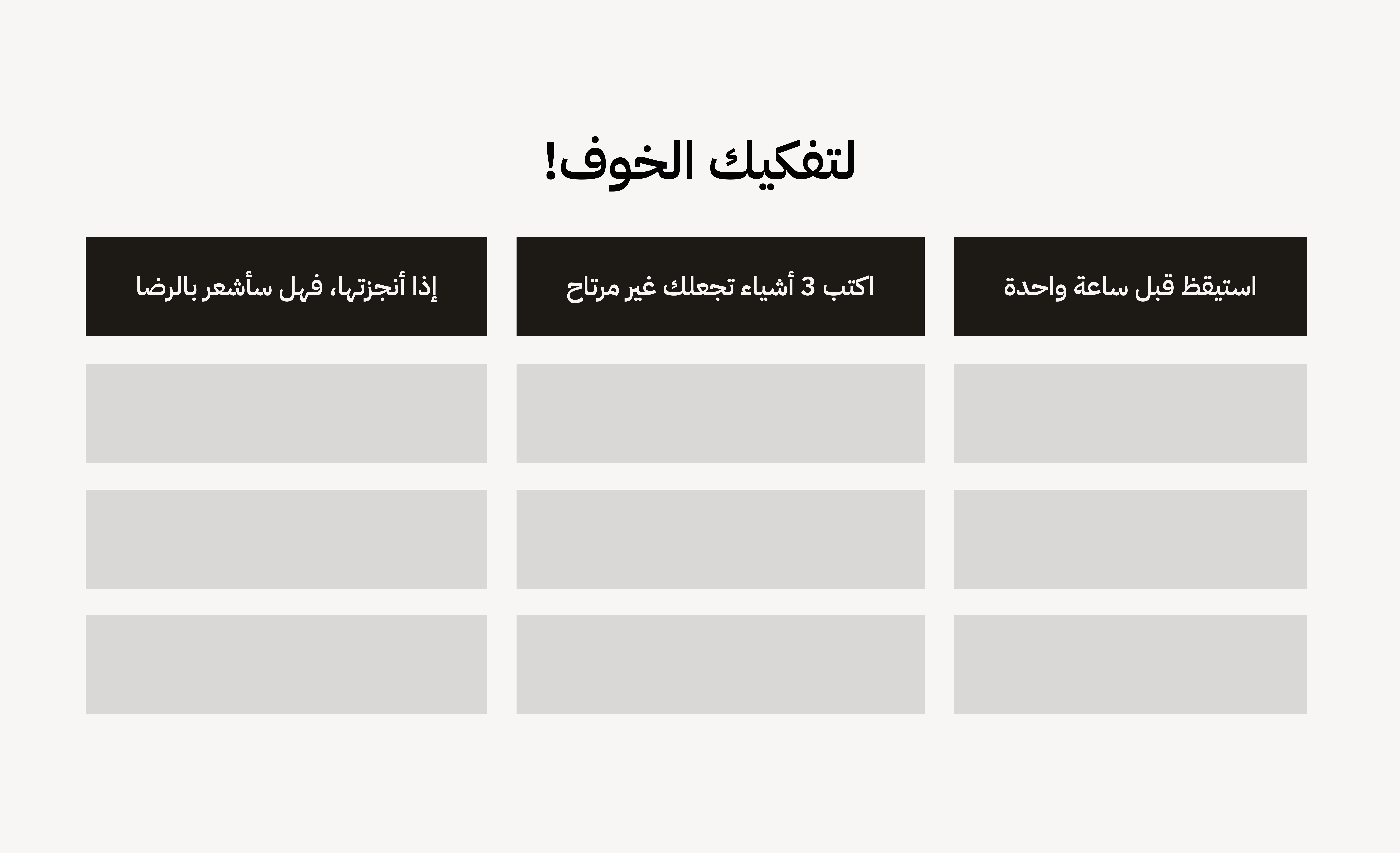 2) اجلس بقلم وورقة، واكتب 3 أشياء - وليس أكثر - تجعلك قلق وغير مرتاح.